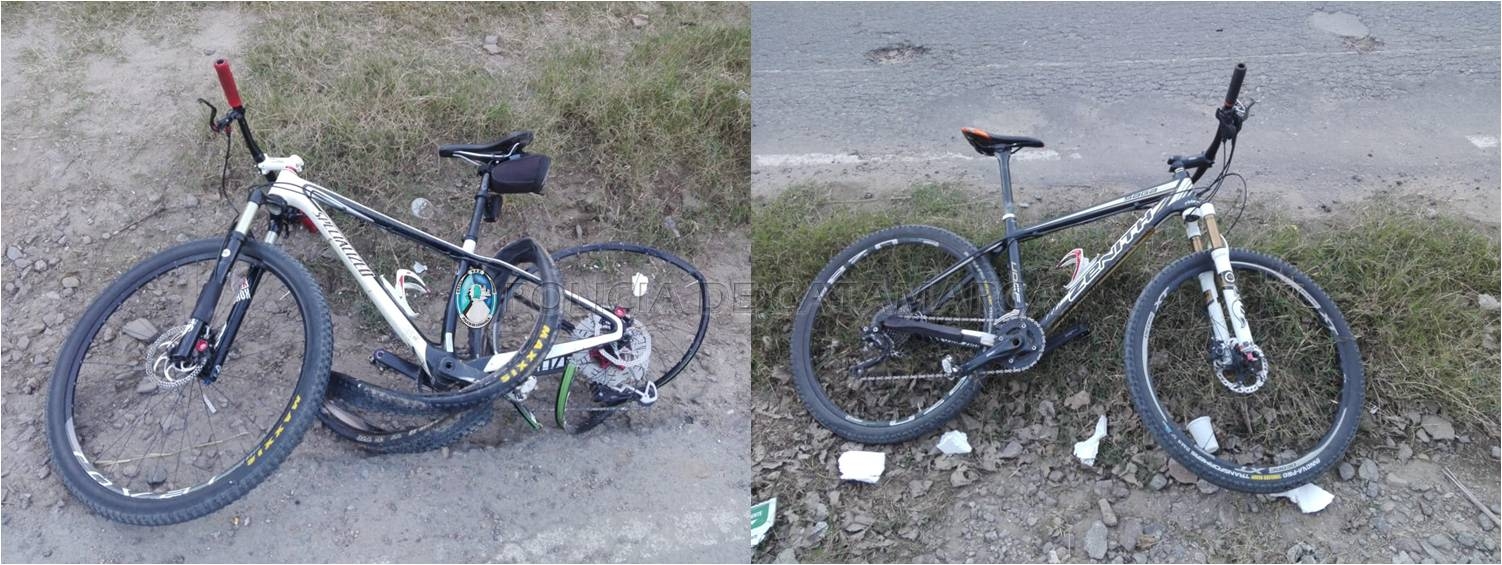 Francisco Ramón Aguirre (38) circulaba en una motocicleta Honda CG Titán 150 cc., dominio 311-IQT, de color negro, en compañía de Noelia Carrizo (28), y por causas que se tratan de establecer, embistió una bicicleta marca Specialized blanca, rodado 29, al mando de Francisco Mario Romero (62), para luego impactar contra otra bicicleta Zenith, rodado 27,5, de colores negro y blanco, conducida por Duilio Osvaldo López Rodríguez (65).