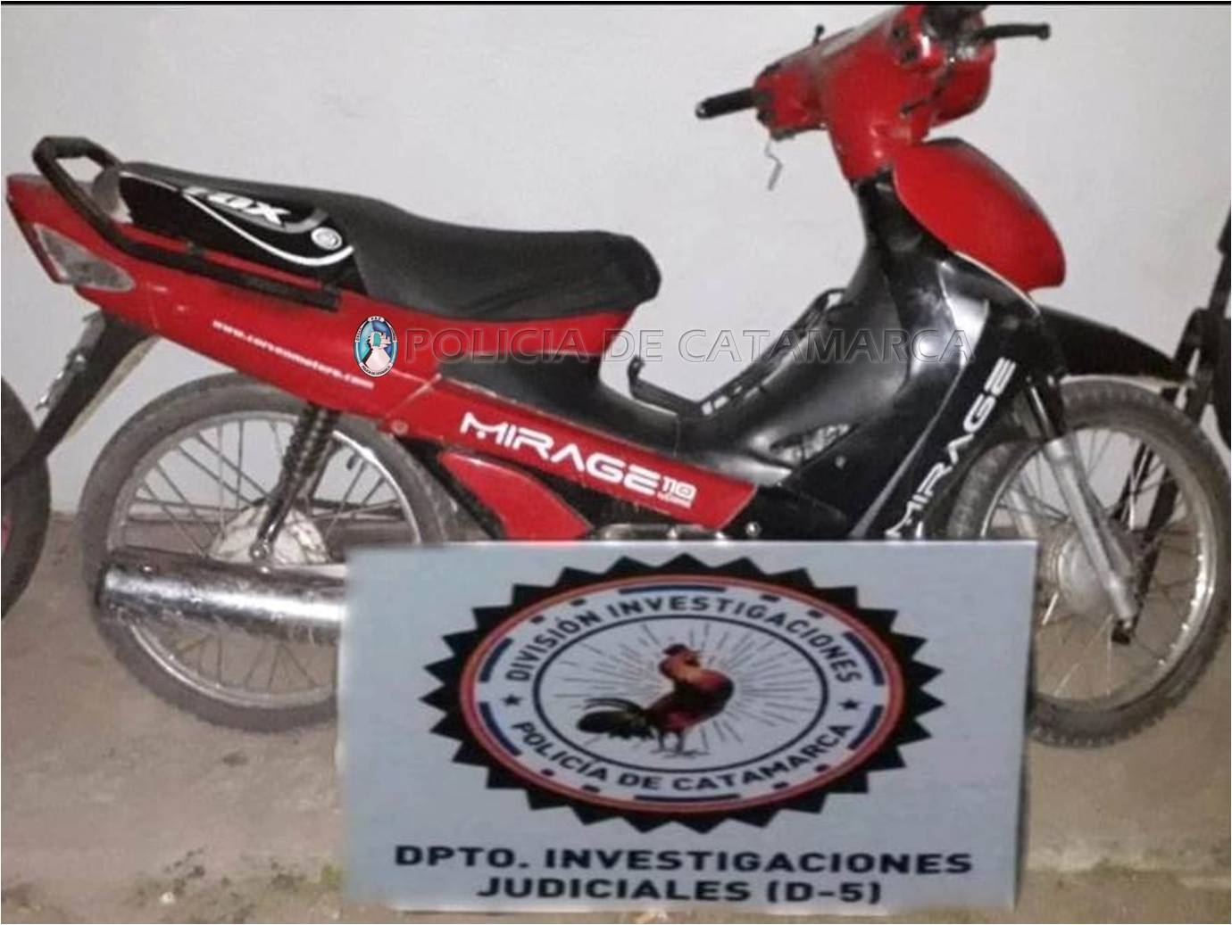 La joven denunció que personas desconocidas le habrían sustraído una motocicleta Corven Mirage 110 cc., de colores negro y rojo, que estaba estacionada frente a su domicilio.