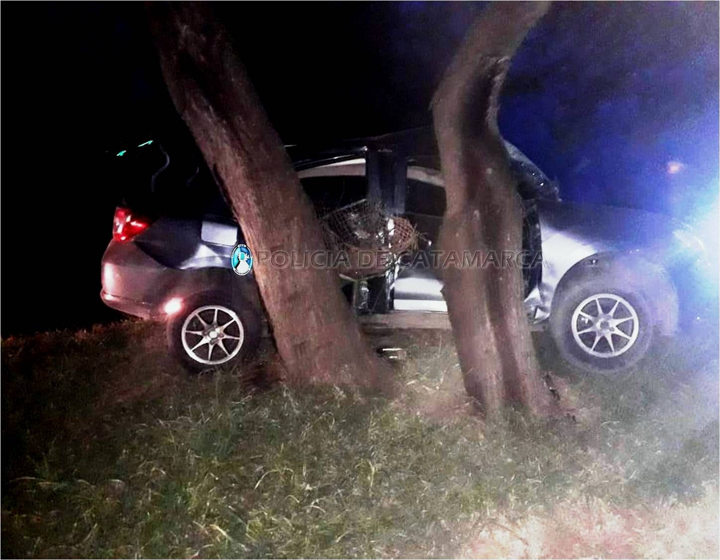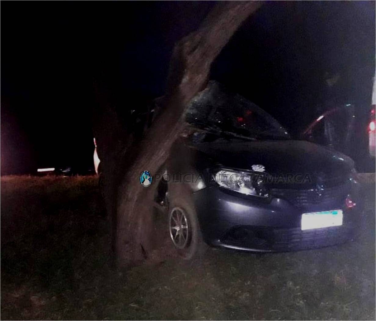 En el lugar, un automóvil Renault Logan gris, dominio AA989RM, perteneciente a una empresa de remises, conducido por Nelson Leonardo Olmos (39), por razones que se investigan, salió de la calzada y chocó contra dos árboles existentes en la zona.