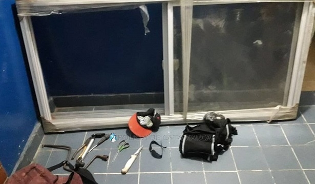 Tras abordarlo, se comprobó que el sujeto, de apellido Díaz (22) llevaba una ventana de aluminio blanca, y un bolso de color bordó, que contenía una cuchilla tipo carnicero y herramientas varias, que quedaron en calidad de secuestro.