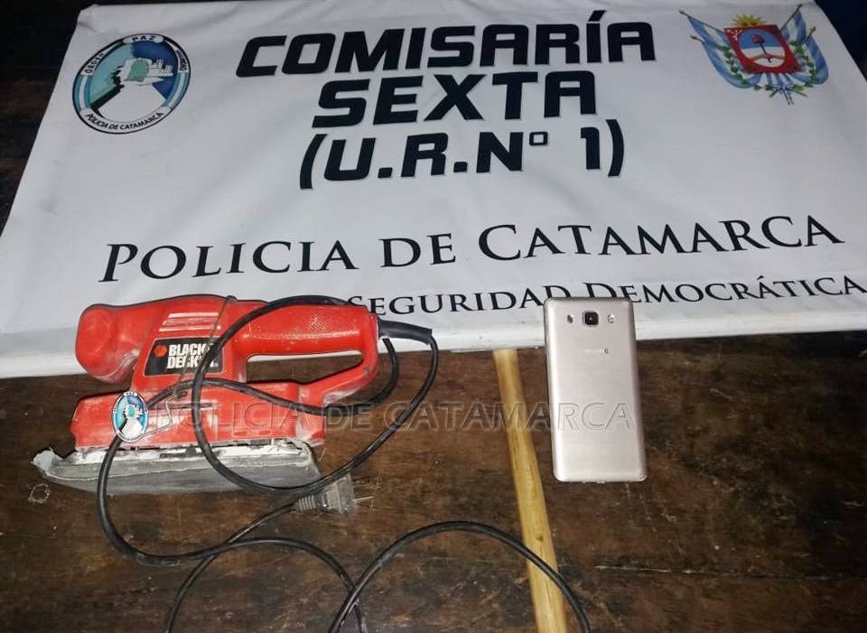 En el lugar, procedieron a la aprehensión de un joven de apellido Cansino, de 24 años, quien habría sido sorprendido llevando una máquina lijadora marca Black and Deker, de color anaranjado, y al percatarse de la presencia policial, intentó darse a la fuga siendo interceptado a los pocos metros del lugar.