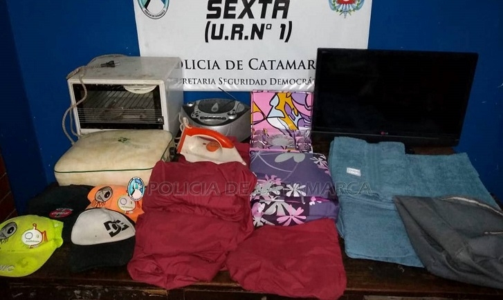 Según informó la policía, se trata de un horno eléctrico marca Galy; un masajeador vibrorelax; cuatro gorras de varios colores; un radiograbador marca Daihatsu, dos (02) juegos de sábanas de 5 piezas, una de color bordó y la otra de colores morado y blanco, una (01) plancha Ultrasonic, de colores blanco y anaranjado, un (01) juego de tazas y platos, un (01) juego de toallas de color turquesa, un (01) bolso gris, y un (01) televisor marca LG de 24", de color negro, en virtud de lo cual se invitó a la damnificada a radicar la denuncia penal correspondiente en el Precinto Judicial N° 6.