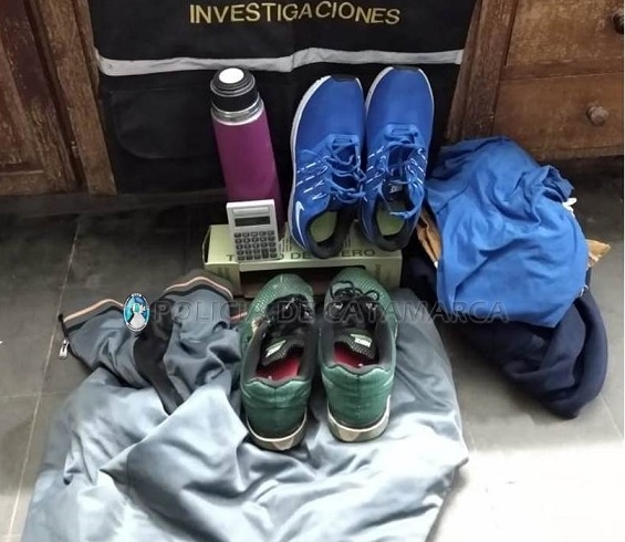 Se trata de un termo de acero inoxidable de un litro, de color morado; dos pares de zapatillas Nike, de colores verde y azul; una campera gris con detalles negros; una campera de jeans azul; un pantalón de gabardina; dos buzos con capucha, ambos de colores azul y rojo; y una remera azul.