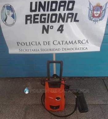 Se trata de una hidrolavadora, que quedó en calidad de secuestro. Luego, y tras llevar a cabo una orden de allanamiento dispuesta por el Juzgado de Control de Garantías de la Segunda Circunscripción Judicial, en un domicilio del mismo Distrito, donde reside la familia Soria, el personal policial interviniente incautó una amoladora, un prolongador de corriente, un martillo y una cinta métrica, que serían producto del hecho investigado.