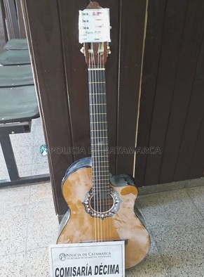 Tras averiguaciones realizadas, el personal policial interviniente determinó que el instrumento musical habría sido sustraído del interior de un local comercial, ubicado en la Peatonal Rivadavia al 1.100, por lo que finalmente el aprehendido quedó alojado en la dependencia policial a disposición de la Fiscalía de Instrucción en feria, y se invitó al encargado del comercio a denunciar el hecho en el Precinto Judicial N° 1.