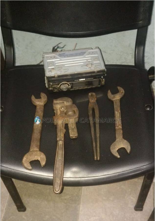 En el lugar, observó que un sujeto llevaba un estéreo marca Superior, de color negro, dos llaves de boca, una tenaza y una llave Stilson, y al percatarse de la presencia policial, habría emprendido la fuga dejando abandonados los elementos en el lugar.
