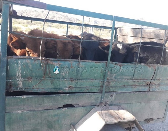 Hoy, en el Puesto Caminero El Portezuelo, Departamento Valle Viejo, policías controlaron una camioneta Chevrolet Silverado, de color negro, que remolcaba un carro verde, y en el que transportaba siete animales vacunos.