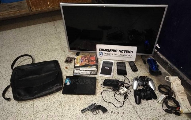 En ese momento, el sujeto se estaba apoderando de un televisor marca LG, de 32 pulgadas, de color gris; un teléfono celular Motorola Moto G; un teléfono celular marca Samsung negro; una tablet Nóblex, de color blanco; una Play Station 2 negra; dos Joystick de colores gris y negro; seis videos juegos; una canillera de fútbol azul; un cargador blanco para teléfonos celulares; una zapatilla de color blanco con su respectivo alargue para corriente eléctrica, y un bolso negro, del interior de un inmueble del barrio propiedad de una mujer mayor de edad.
