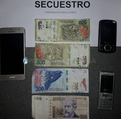 Al realizarle la requisa correspondiente le encontraron entre sus prendas de vestir tres teléfonos celulares marcas Sony Ericsson negro, Pantech de color gris y un Samsung Galaxy J-2 Prime beige, como así también la suma de $1.300, que quedaron en calidad de secuestro hasta determinar su legitima propiedad y procedencia.