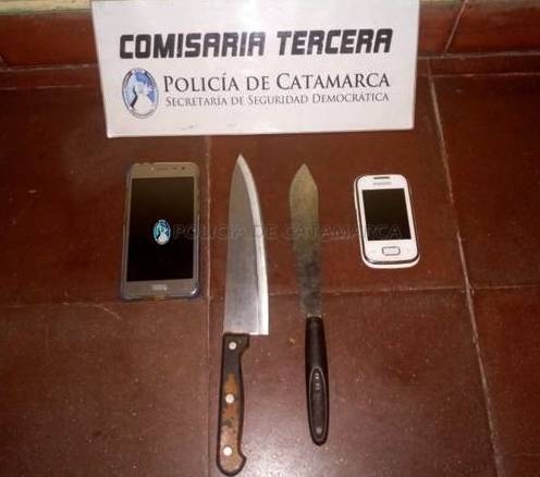 Cabe señalar, que al momento de realizarle la requisa correspondiente, el personal policial interviniente encontró entre sus prendas de vestir un teléfono celular Samsung J-2 y otro cuchillo, que también fueron incautados, y con las características brindadas, se realizaron amplios recorridos por la zona, logrando los policías en la Avenida Presidente Castillo al 600 aprehender a otro hombre de apellido Fuentes (38), y durante el procedimiento secuestraron otro teléfono celular Samsung Pocket, como así también el rodado en el que circulaba.