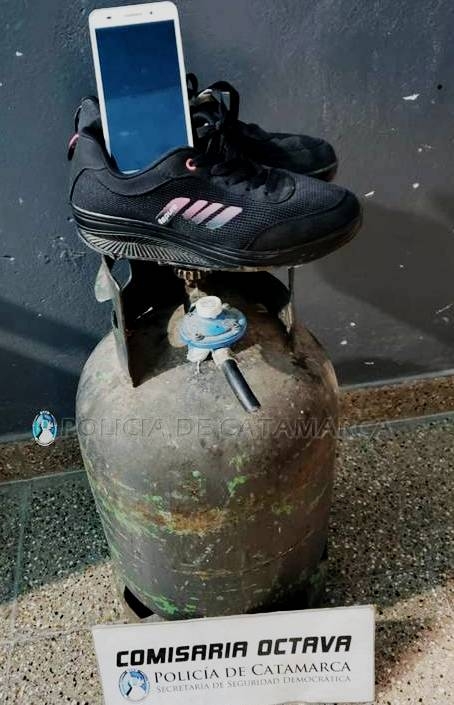 En el lugar, los policías se entrevistaron con una mujer de 42 años, quien manifestó que personas desconocidas habrían ingresado a su domicilio y en el fondo del inmueble dejaron abandonado una garrafa de gas de 10 kg., de color azul, un par de zapatillas negras, y un teléfono celular marca Huawei, de color blanco.