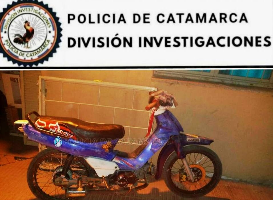 Anoche, a las 20.30, tras averiguaciones practicadas, personal de la División Investigaciones de la Policía, bajo las directivas de la Fiscalía de Instrucción en turno, materializó un registro domiciliario en el barrio Los Bajos, de la localidad de San Isidro, Valle Viejo, propiedad de una familia de apellido Castro, donde logró recuperar el rodado sustraído, que quedó en calidad de secuestro, a disposición de la Justicia interviniente.