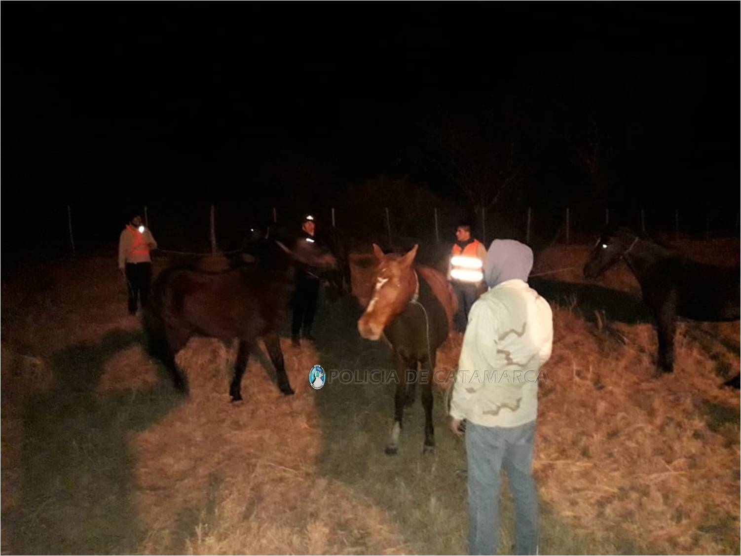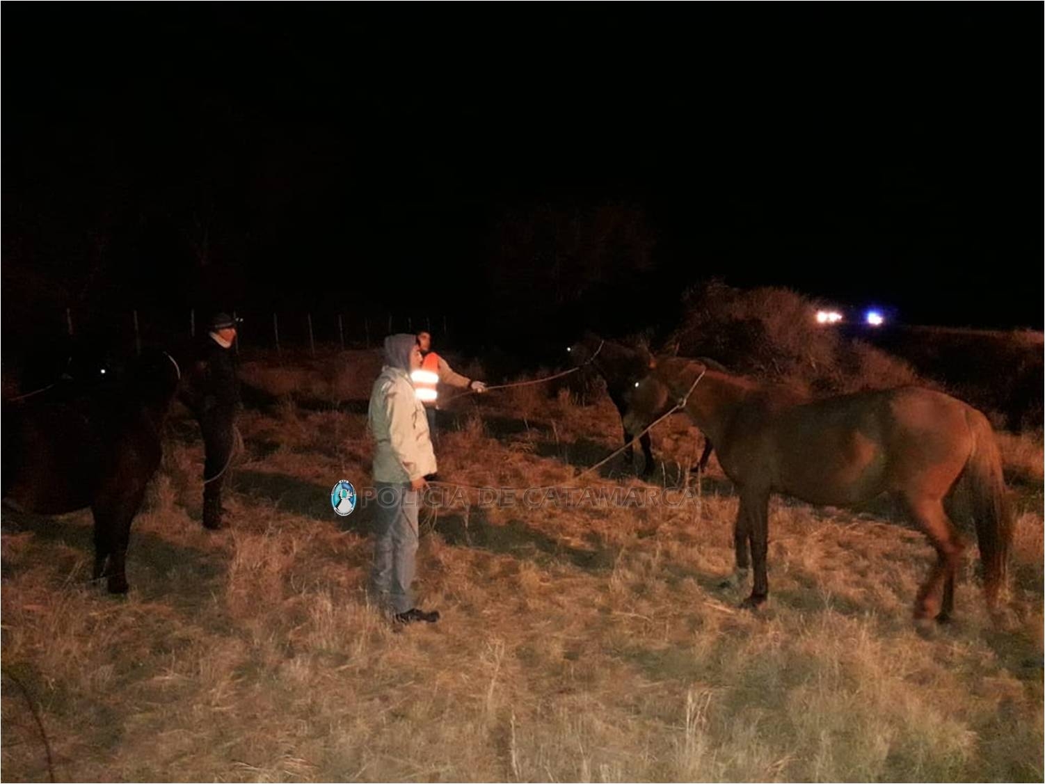 A la altura del kilómetro N° 1.015, y en las localidades Balde La Punta, Capayán, La Horqueta y Casa de Piedra, La Paz, efectivos de la División Policía Montada, dependiente de la Dirección de Unidades Especiales de la Policía de la Provincia, realizaron captura de animales sueltos.