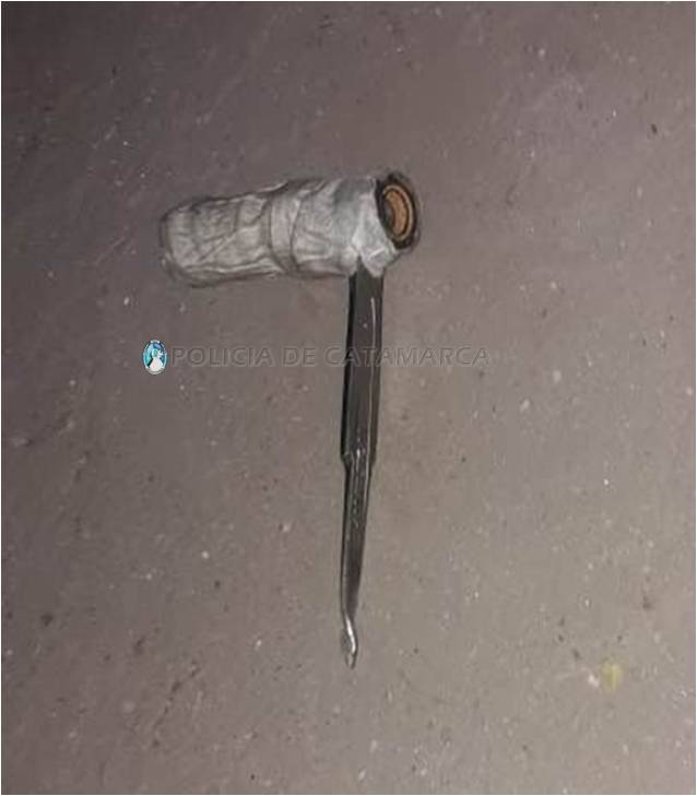 Cabe mencionar que al momento de realizarle la requisa correspondiente, el personal policial interviniente encontró entre sus prendas de vestir un elemento punzante de fabricación casera conocido como “espadita”, que quedó en calidad de secuestro, por lo que finalmente se invitó al damnificado a denunciar el hecho en el Precinto Judicial N° 5, en tanto que el aprehendido fue trasladado y alojado en la Seccional a disposición de la Fiscalía de Instrucción en turno, desde donde indicaron las medidas a adoptar.