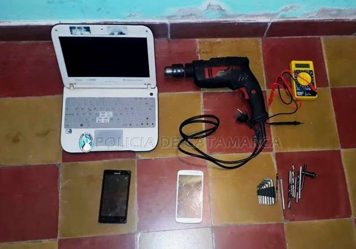 El denunciante manifestó que personas desconocidas le habrían sustraído de su domicilio una notebook perteneciente al Programa "Conectar Igualdad", un taladro marca Skil, con sus respectivas mechas, un tester, un teléfono celular Samsung de color blanco, y un teléfono celular marca Philips negro.