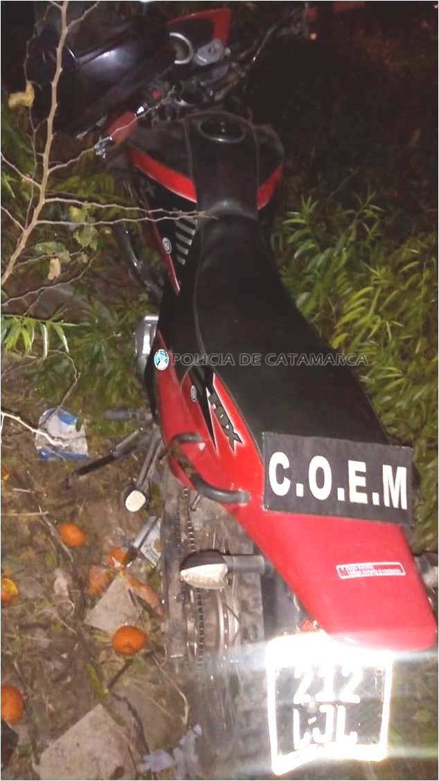 En el lugar, observaron que una motocicleta Motomel CX 150 cc., dominio 212-JLJ, de color rojo, estaba abandonada en el lugar, en virtud de lo cual quedó en calidad de secuestro en la Comisaría Sexta, que por jurisdicción corresponde, hasta determinar su legitima propiedad y procedencia.