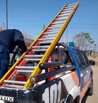 En el lugar, el personal policial interviniente se entrevistó con una joven mujer de 27 años, quien manifestó que personas desconocidas habrían dejado abandonada una escalera metálica extensible, de 4 metros, de colores amarillo y naranjado, que quedó en calidad de secuestro hasta determinar su legitima propiedad y procedencia.