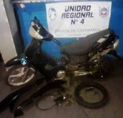 En una vivienda, ubicada en el distrito Huaco de la ciudad de Andalgalá, propiedad de la familia Atencio, los efectivos incautaron motopartes pertenecientes al rodado denunciado y secuestraron una motocicleta tipo 110 cc., cuyo número de motor y cuadro estaban aparentemente adulterados.