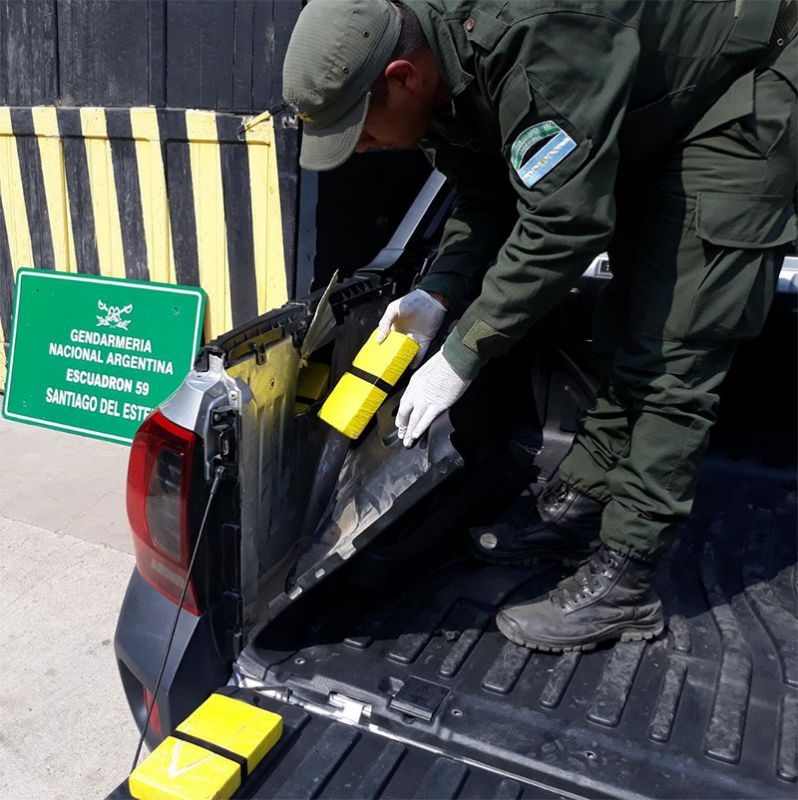 Gendarmería Nacional, dependiente del Ministerio de Seguridad de la Nación, decomisó 56.925 kilogramos de cocaína trasladados en un compartimiento de una camioneta. El procedimiento fue realizado en la Ciudad de Frías. El conductor quedó detenido.