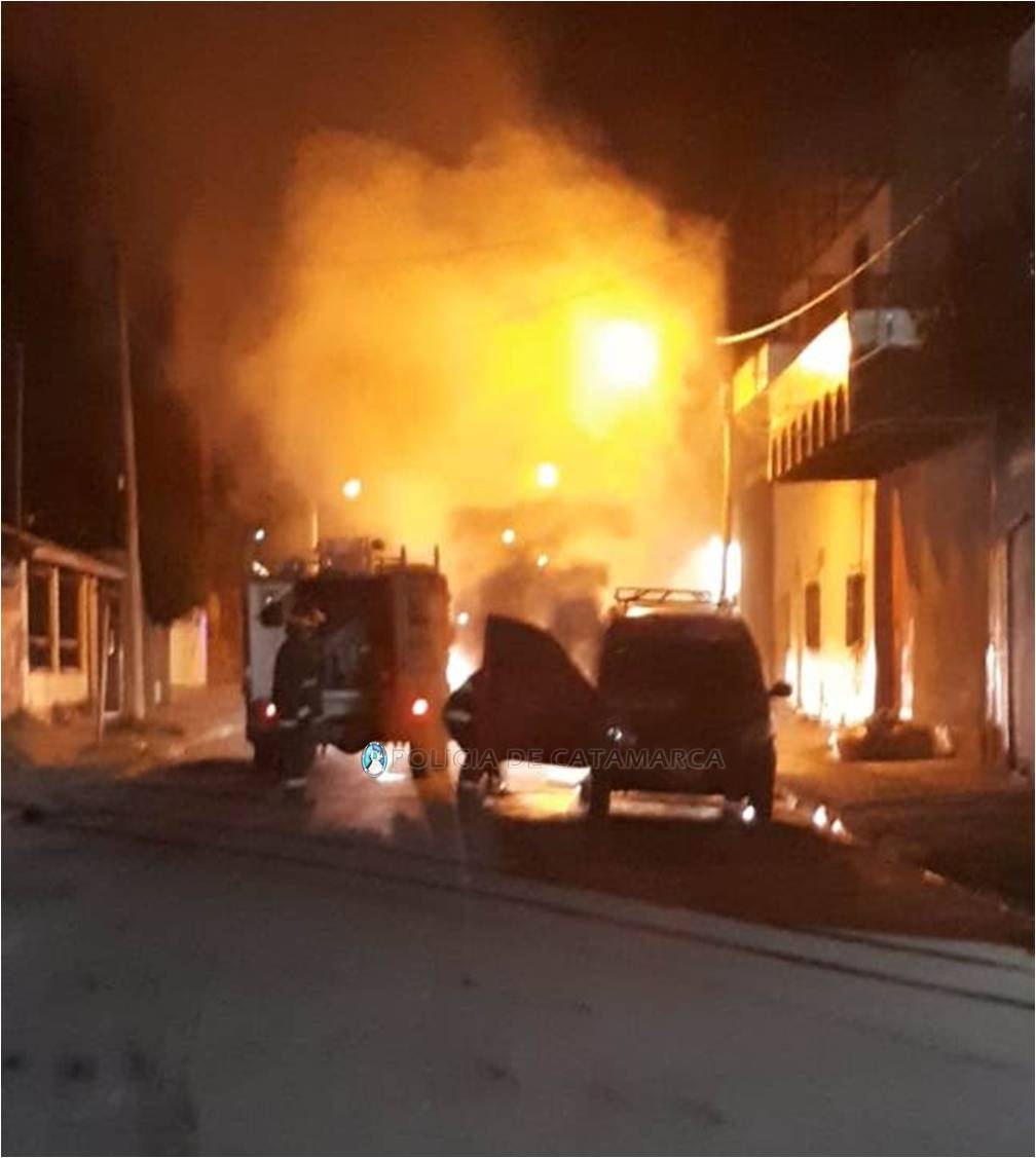 Por causas que son materia de investigación, el rodado estaba siendo consumido por las llamas, en virtud de lo cual se solicitó la colaboración de efectivos de la Dirección Bomberos de la Policía de la Provincia, quienes realizaron las tareas de rigor y sofocaron las llamas, que ocasionaron daños materiales totales en el vehículo.