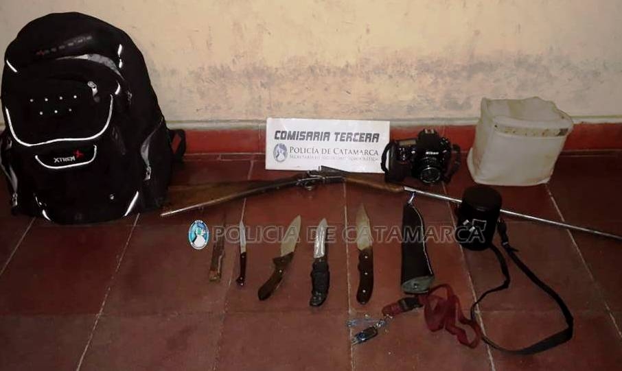 En el lugar, los policías procedieron a la aprehensión de un hombre de apellido Domínguez Di Sarli (39), quien circulaba a bordo de un automóvil Renault Symbol, de color gris, y al momento de inspeccionar el vehículo, encontraron tres cuchillos, dos navajas, una escopeta calibre 10.4, y una mochila de color negro, que contenía en su interior dos pendrive, ambos marca Kingston, y una cámara fotográfica Nikon con su respectivo lente zoom.