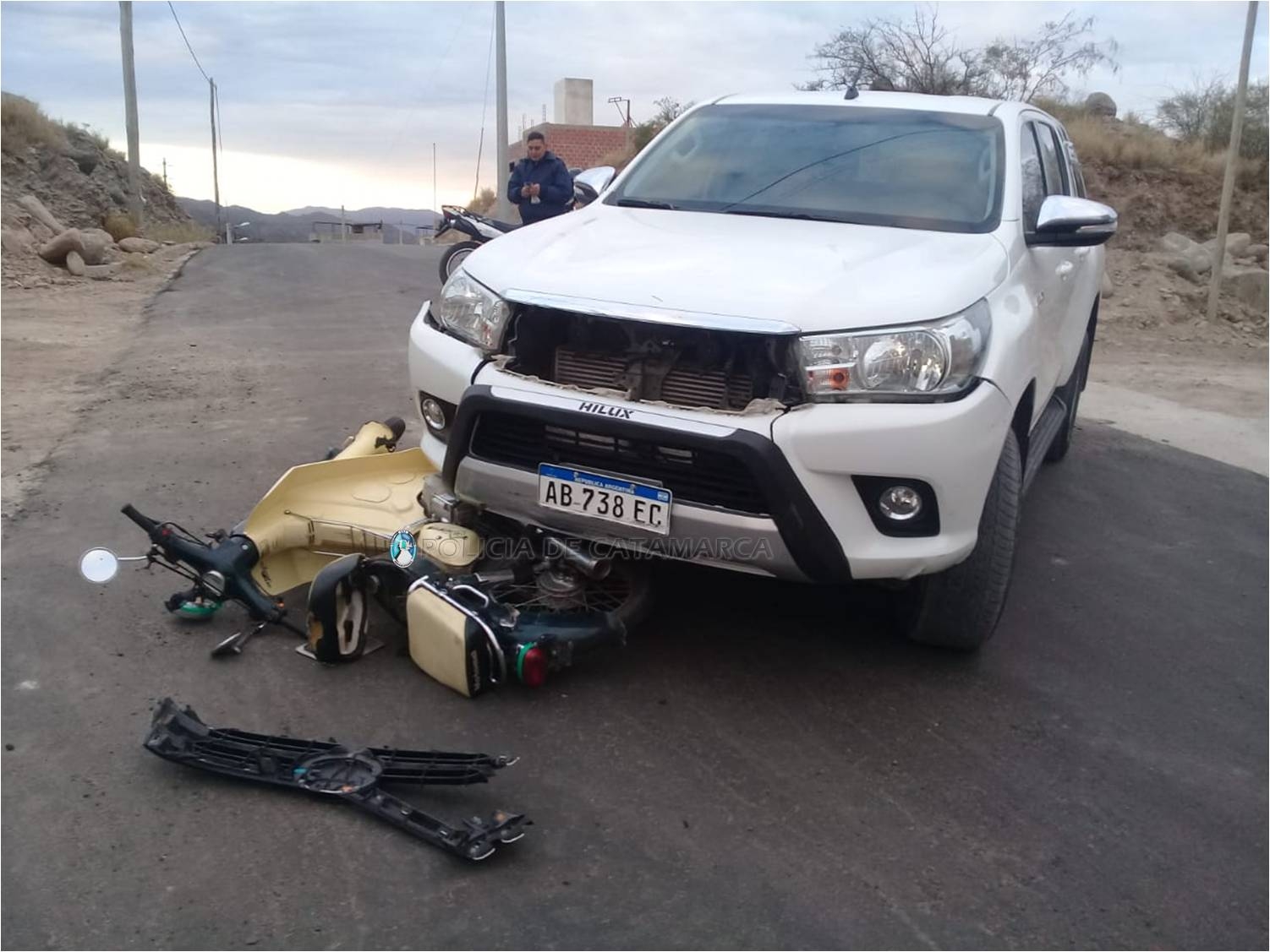 El accidente fue protagonizado por una motocicleta Motomel 125 cc., dominio A039XYH, de colores verde y gris, conducida por José Luis Silva (49), que por causas que se investigan, colisionó con una camioneta Toyota Hilux, dominio AB738EC, de color blanco, al mando de Víctor Roberto Núñez (65).