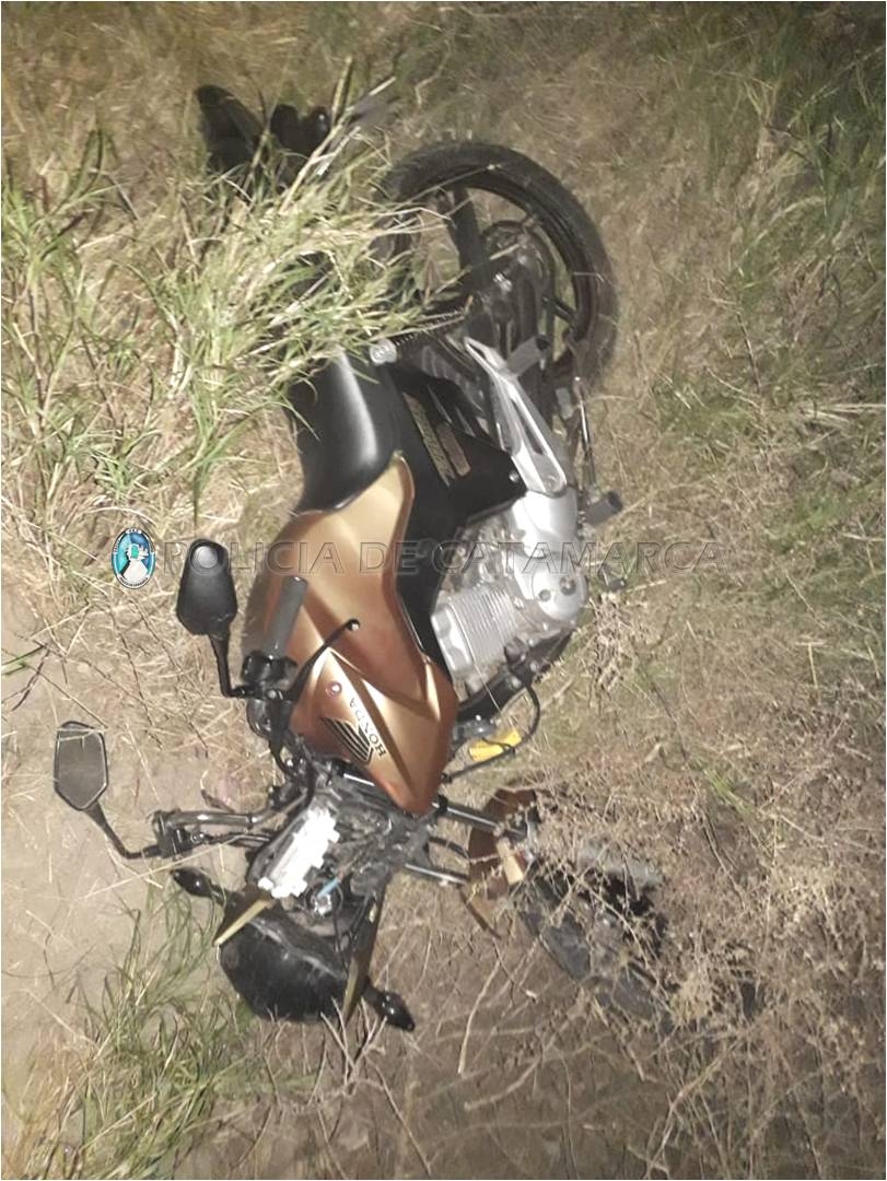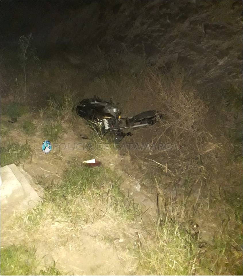Alexander Orellana (31) circulaba en una motocicleta Honda CG Titán 150 cc., dominio A017GGO, de colores negro y dorado, y por razones que se tratan de establecer, perdió el control del rodado y terminó cayendo en una zanja existente al costado de la banquina.