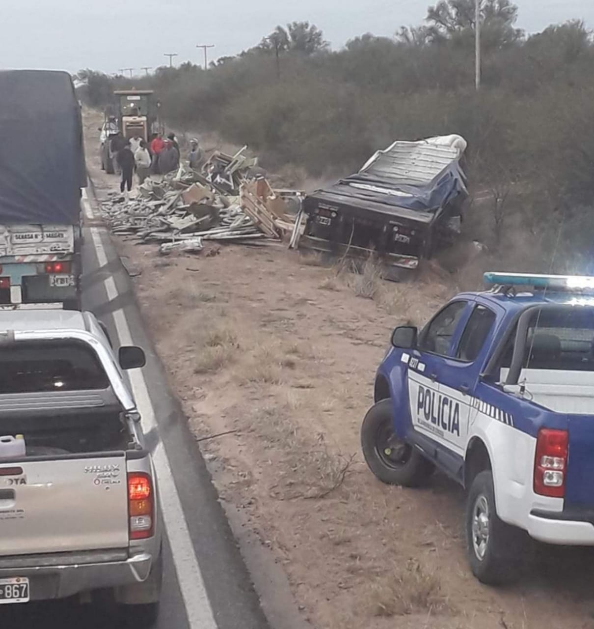 Tras el siniestro, la Policía Caminera realizó un corte total durante dos horas para el tránsito pesado y vehículos menores circularon por la banquina.