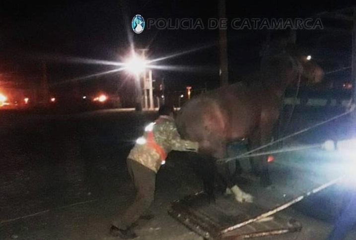 Asimismo, en la ruta provincial N° 46, a la altura de la localidad de Saujil, Departamento Pomán, los policías secuestraron una yegua pelaje rosillo frontino, miembros anteriores y posterior derecho blancos, marca de fuego alfa numérica parte superior “31” e inferior “A, y un (01) caballo colorado, marca de fuego alfanumérica parte superior “AR” e inferior “97”, en cumplimiento a lo normado por la Ley Nº 4851/95.