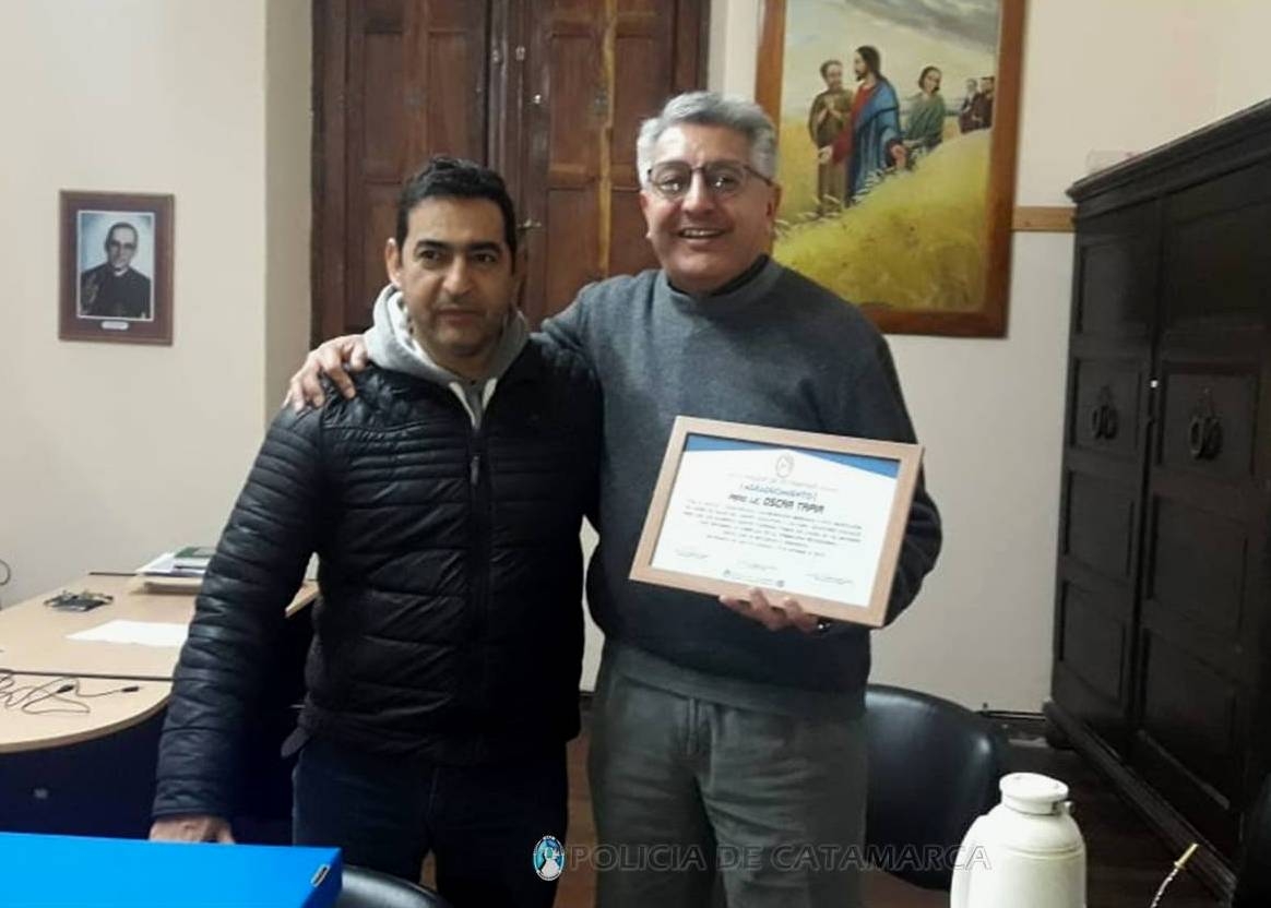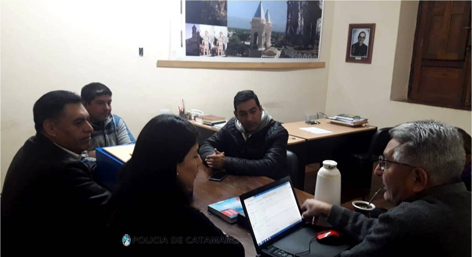 El jefe de Policía, Crio. Gral. Lic. Orlando Antonio Quevedo, junto al Rector del IES Policial, Crio. My. Lic. Domingo Alberto Reinoso, a la Secretaria Académica, Of. Ppal. Lic. Alba Marisol Vega y al Oficial Adjutor Principal Romero Daniel Alejandro, perteneciente al Servicio Penitenciario Provincial, fueron recibidos por el Director General del CECULD Pbro. Lic. Oscar Tapia, y el titular de la Institución Policial le expresó el agradecimiento por haber cedido sus aulas para que alumnos de la Escuela de Cadetes "Tte. Gral. Juan Domingo Perón" pudieran tomar sus clases en distintos espacios curriculares, mientras se llevaba a cabo la construcción de nuevas aulas en la Escuela de Cadetes.