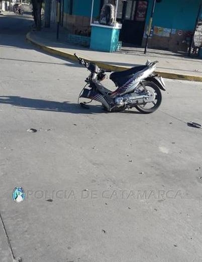 En la madrugada de este sábado, a las 5.40, en la Avenida Camino de la Virgen, a la altura de la rotonda del Cristo, de la localidad de San Isidro, departamento Valle Viejo, se produjo un siniestro vial protagonizado por una motocicleta Motomel 110 cc., dominio 562HQM, de color rojo, al mando de Lucas Nahuel Salcedo (20), quien por causas que son materia de investigación, perdió el control del rodado y cayó a la cinta asfáltica, sufriendo lesiones que demandaron que fuera asistido por facultativos médicos del SAME.