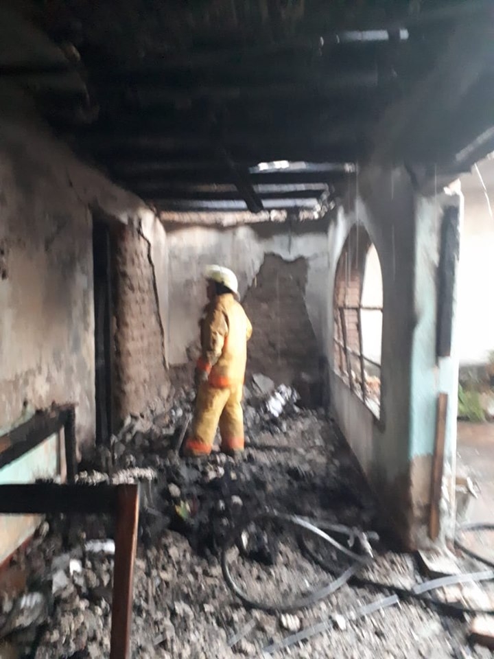 Personal de Bomberos tuvo que trabajar alrededor de una hora y media para sofocar el fuego, enfriar las paredes y proceder al derrumbe del techo, solamente se registraron daños materiales.