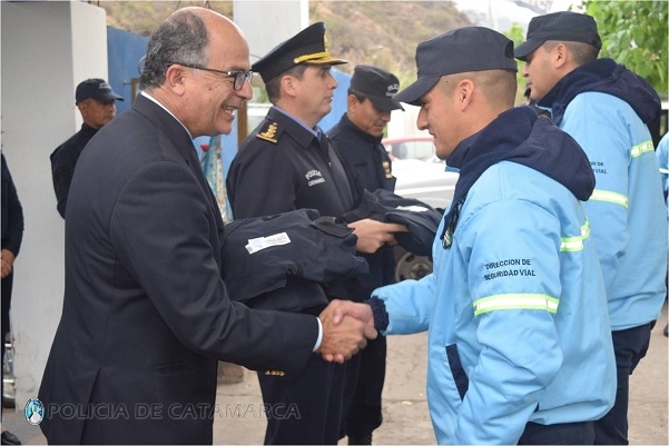 Durante la visita, las autoridades entregaron chaquetillas al personal policial que cumple servicio en el “Operativo Semana del Estudiante 2019”, en vistas a optimizar la labor diaria de prevención, en especial en los distintos puestos camineros de acceso al Valle Central, donde los efectivos velan por la seguridad de todos los catamarqueños que transitan diariamente las distintas rutas como así también de aquellas personas que visitan nuestra provincia.