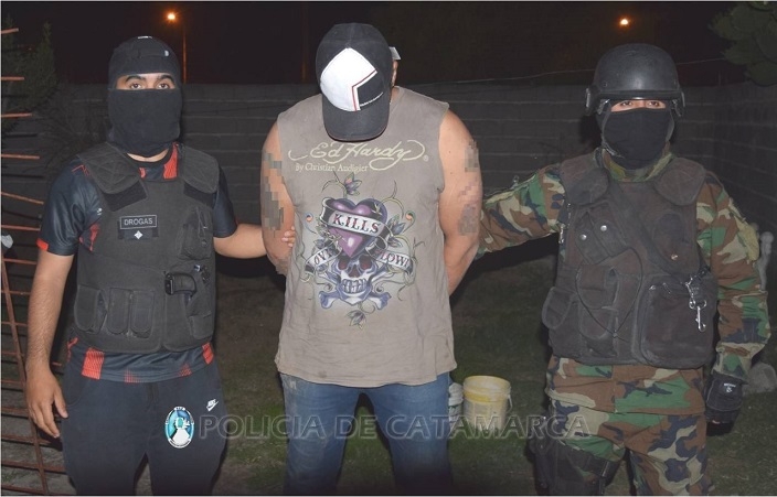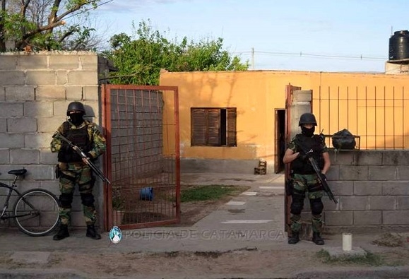 El allanamiento fue concretado por efectivo de la División Drogas Peligrosas de la Policía de la Provincia, Grupo Kuntur y personal femenino de la Guardia de Infantería, bajo las órdenes del Juzgado Federal.