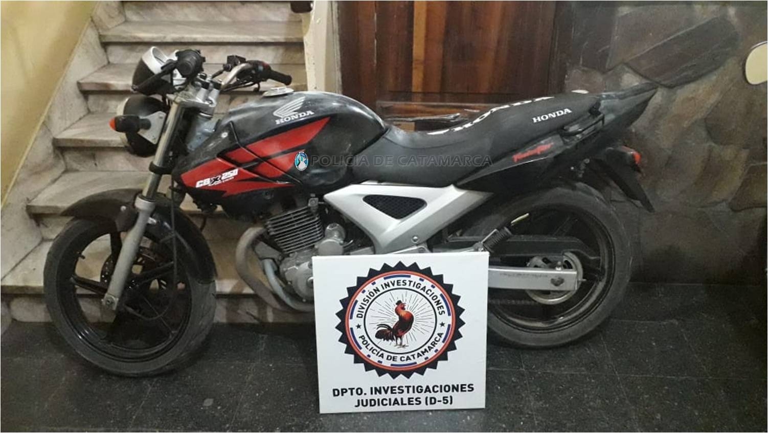 Tras realizar trabajos de su especialidad, personal de la División Investigaciones de la Policía de la Provincia, materializó un registro domiciliario, bajo las directivas de la Fiscalía Instrucción N° 3, a cargo del Dr. Ricardo Javier Herrera, en un domicilio ubicado en la calle N° 4, de la localidad de Colonia del Valle, Departamento Capayán, propiedad de la Familia Gómez, donde recuperó la motocicleta sustraída que quedó en calidad de secuestro a disposición de la Justicia interviniente, mientras que los moradores fueron supeditados a la prosecución de la causa.