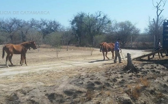 Hoy, a las 11:15, personal de la División Policía Montada llegó hasta Avenida Enrique Ocampo, a la altura del Club Banco de la localidad de Pozo El Mistol, donde secuestró una mula pelaje pardo, un caballo alazán listado, una potranca alazán listado, miembros posteriores blancos y un potrillo pelaje alazán, miembro posterior del lado del lazo blanco; todos sin marca de fuego, en cumplimiento a lo normado por la Ley Nº 4851/95.