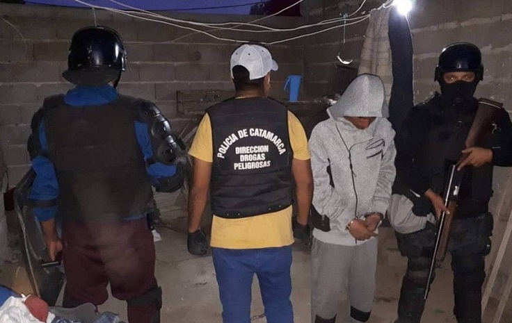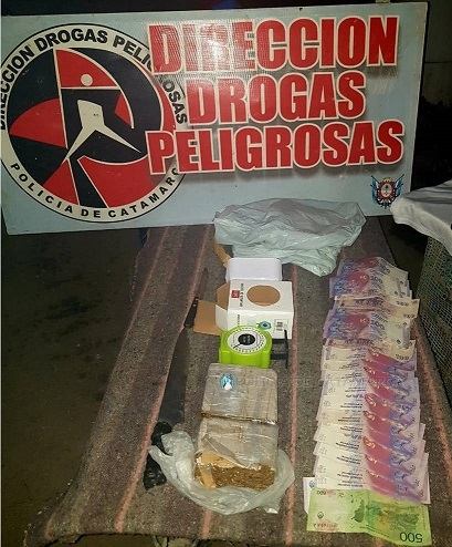 En un domicilio ubicado frente a la plaza de la localidad de El Pajonal, Departamento Pomán, con la colaboración de sus pares de la Comisaría Departamental Pomán y del Grupo de Intervención Rápida (GIR) de Saujil, los efectivos secuestraron dos trozos compactados conteniendo una sustancia herbácea, que al ser sometida a la prueba de campo correspondiente, arrojó como resultado que se trataba de 1 Kg. de Marihuana, una licuadora y dos cuchillos con restos de la sustancia estupefaciente, una balanza de cocina y una importante suma de dinero en efectivo.