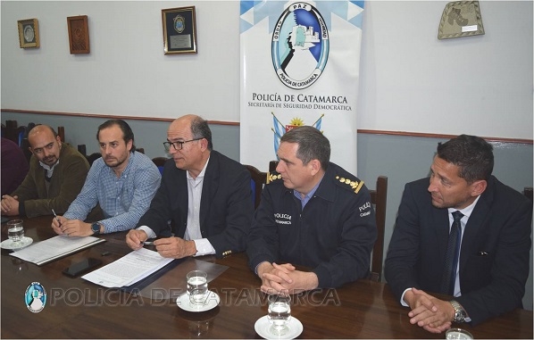 Durante la reunión, se hizo la activación de ocho teléfonos celulares que contarán con el mencionado Sistema, y acompañaron esta importante firma de convenio el Subjefe de Policía, Carlos Alfredo Kunz, el Director de Inteligencia Criminal, Gabriel Mena, autoridades del COPROSEDE, efectivos de la Dirección Inteligencia Criminal y de la División Investigaciones de la Policía de la Provincia.