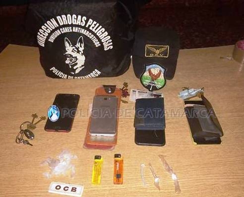 Al inspeccionar el rodado, los efectivos encontraron dos envoltorios de nylon, que en su interior contenían una sustancia de color blanco y un cigarrillo de armado casero con otra sustancia tipo herbácea, que al ser sometidas a la prueba de campo correspondiente, se logró establecer que se trataba de dos dosis de cocaína y una dosis de Marihuana.