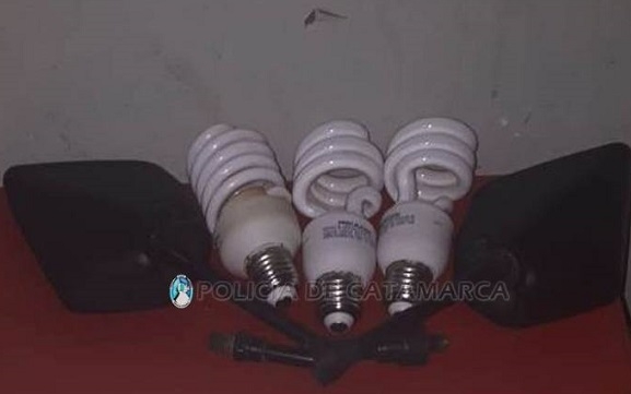 Tras realizarle la requisa correspondiente, los policías encontraron entre sus pertenencias los elementos sustraídos y tres focos bajo consumo de los cuales no supo acreditar su legítima propiedad y procedencia y quedaron en calidad de secuestro.