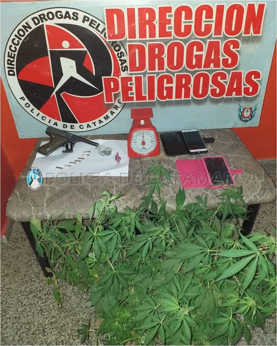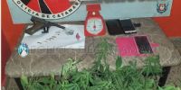 En un domicilio ubicado en la calle ExCombatientes de Malvinas, del barrio 130 viviendas norte, los efectivos secuestraron una pistola calibre 22 largo marca Ataque, con su respectivo cargador y siete cartuchos del mismo calibre, una balanza apta para pesar gramos, dos teléfonos celulares de distintas marcas y modelos, dosis de marihuana listas para comercializar, y al inspeccionar el fondo del inmueble, encontraron dos plantas de la variedad Cannabis Sativa de entre 25 cm. y 1,10 metros de altura, que estaban siendo cultivadas.