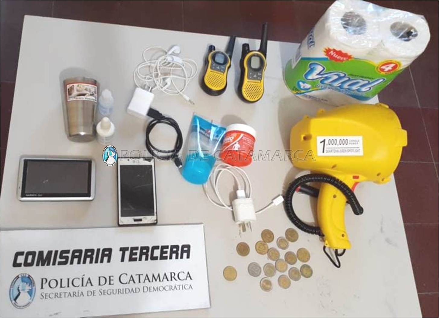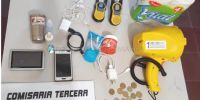 Estos jóvenes habrían sido sorprendidos llevando un bolso y tres mochilas, que en su interior contenían prendas de vestir varias, elementos de higiene, ocho pares de zapatillas, un par de handies amarillos, una balanza electrónica, un set para asado, una linterna amarilla, un teléfono celular marca LG, un GPS marca Marwin de colores blanco y negro con su respectivo cargador, un manos libres para teléfono celular, tres cuchillas tipo carnicero, una garrafa de gas 10 Kg. amarilla, y un pavo congelado.