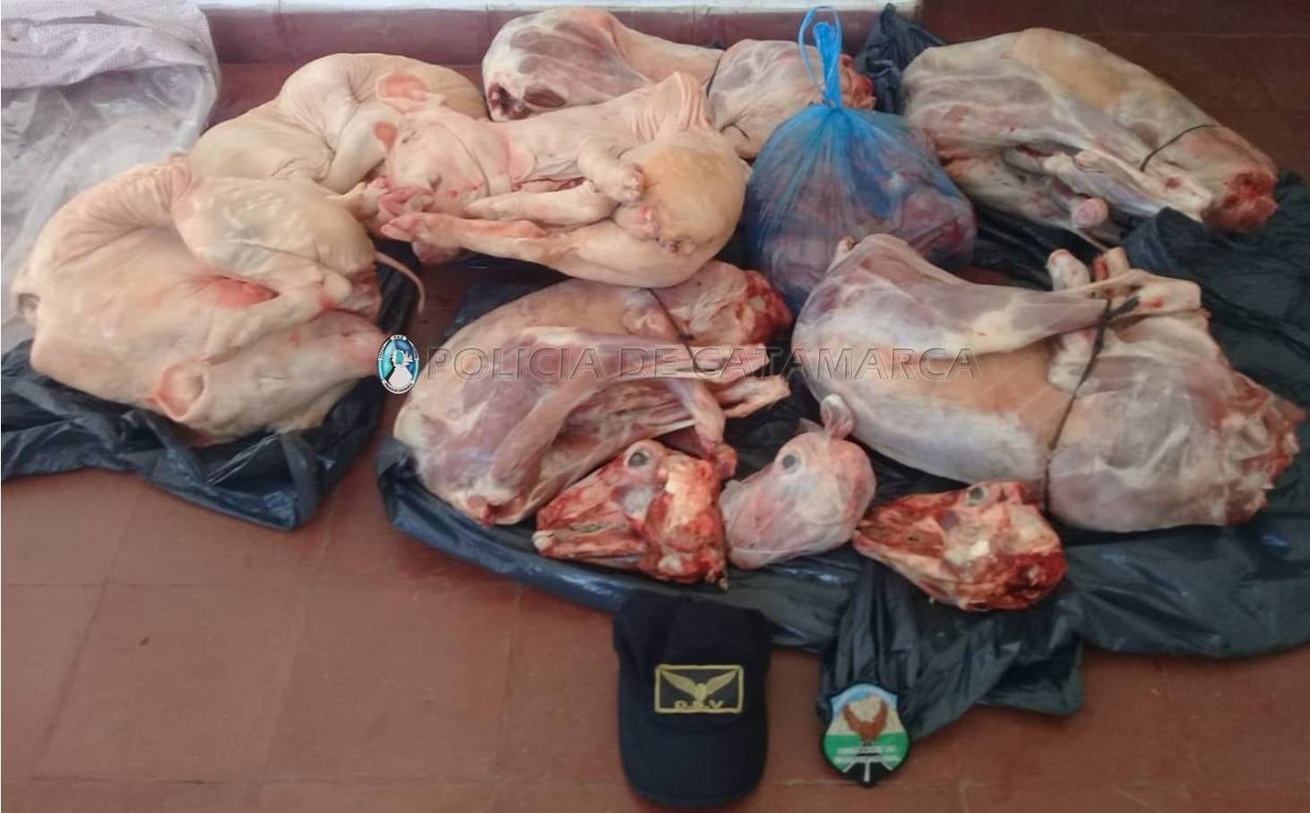 Tras inspeccionar el rodado, los policías observaron que en el interior del baúl transportaba tres lechones y cuatro corderos faenados, como así también siete cabezas de los animales, sin la cadena de frío y medidas de salubridad e higiene correspondientes.