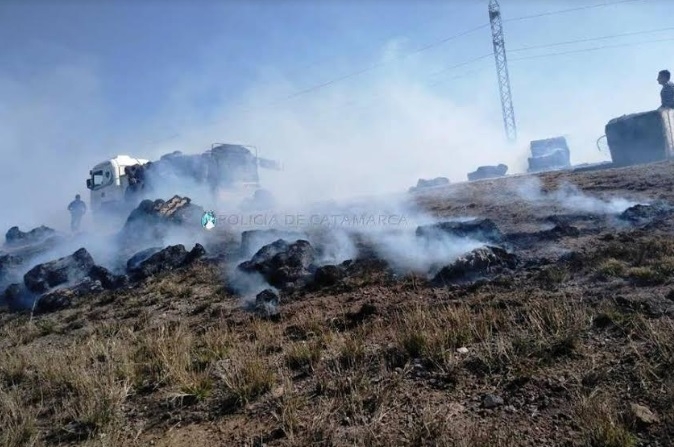 Al llegar al lugar, los Policías constataron que, por causas que son materia de investigación, el foco ígneo se habría originado en la carga de algodón que transportaba un camión Mercedes Benz, dominio GNB-471, de color blanco, conducido por Marcelo Fabián Panicali (51), oriundo de la provincia de Santa Fe, por lo que rápidamente, junto a vecinos de la zona, lograron sofocar las llamas que solo ocasionaron daños materiales parciales.