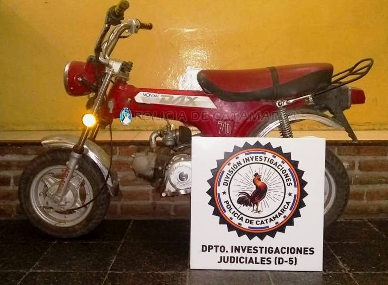 En inmediaciones a la intersección de la Avenida Güemes, observaron a dos sujetos empujando una motocicleta Mondial Max 70 cc., de color rojo.