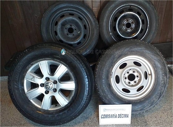 Tras averiguaciones realizadas, los Policías lograron establecer que esta persona habría comercializado varias ruedas de vehículos, en virtud de lo cual se constituyeron en un domicilio ubicado en la esquina de la mencionada Avenida y calle 1° de mayo, donde se entrevistaron con una mujer de 54 años, quien hizo entrega voluntaria de una horquilla de jardín, y cuatro ruedas armadas rodado N°15 y 16, que fueron incautados hasta determinar su legitima propiedad y procedencia.