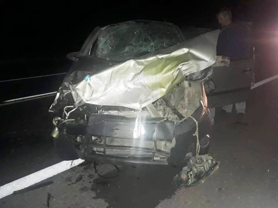 El accidente fue protagonizado por una camioneta Ford Ecosport, dominio HEC-058, de color gris, conducida por Pablo Daniel Gurovich (51), que por causas que se tratan de establecer, habría embestido a un animal vacuno para luego volcar e impactar contra una Fiat Strada Working blanca, dominio AD297DF, al mando de Ramón Francisco Romero (66).