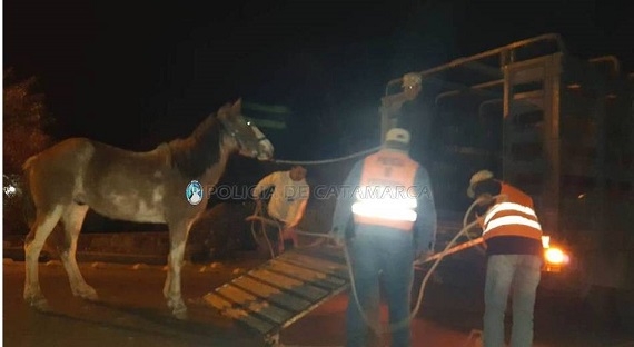 En la Avenida de Circunvalación, a la altura del Puente del Rio del Valle, de la localidad de Sumalao, Valle Viejo, los efectivos procedieron al secuestro de una yegua, pelaje bayo goteado, crin larga, marca de fuego en pierna derecha poco legible. Asimismo, en calle Los Nardos de la localidad de El Rodeo, Departamento Ambato, el personal policial interviniente hizo lo propio con un caballo alazán listado, miembros blancos, crin larga; una yegua, pelaje alazán listado, crin larga, miembro posterior izquierdo blanco; una yegua poni negra frontina, lomo overo, crin larga, miembro posterior derecho blanco, sin marca de fuego visible.