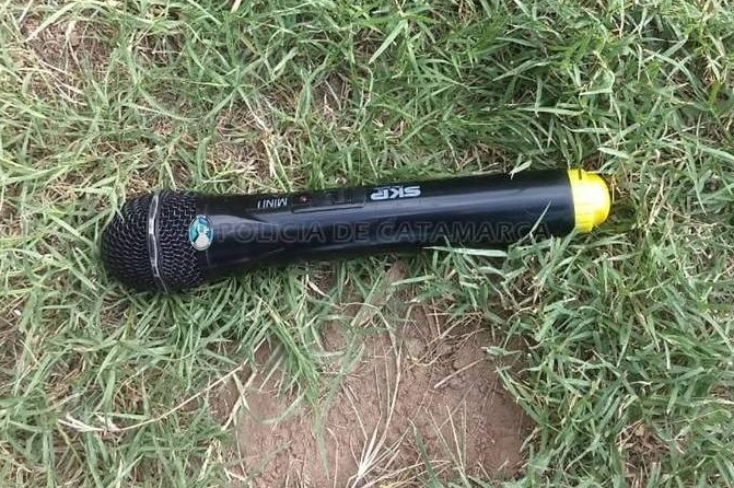 De inmediato y con las características brindadas, los motoristas llegaron hasta el interior del Parque Adán Quiroga, y aprehendieron a un joven de 19 años, de apellido Barrera, y al momento de realizarle la requisa correspondiente encontraron entre sus prendas de vestir un micrófono inalámbrico, de colores negro y amarillo, que quedó en calidad de secuestro.