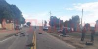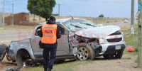 La camioneta en la que viajaban quedó prácticamente destruida, efectivos policiales, de Gendarmería y Bomberos trabajaron durante varios minutos para levantar los cuerpos.